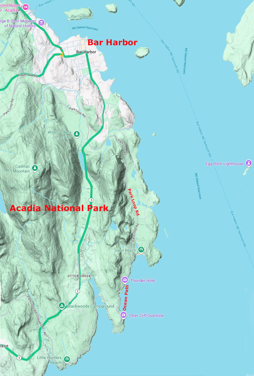 Großer Park am südwestlichen Stadtrand von Bar Harbor.. |