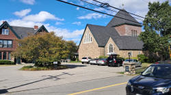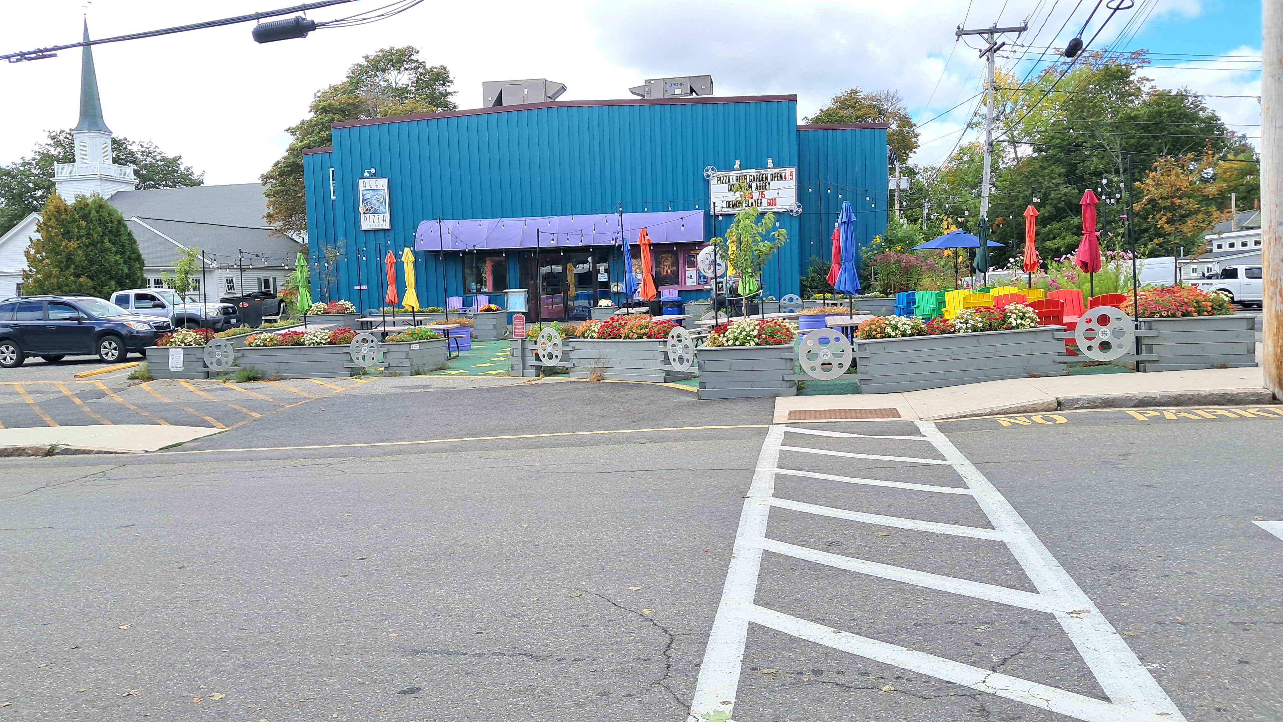 Dieses Pizza-Restaurant neben der Congregational Church zeigt sich äußerst farbenfroh. |