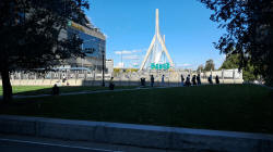 Die Leonard P. Zakim Bunker Hill Memorial Bridge gilt als ein Wahrzeichen von Boston, da sie mit ihrem einzigartigen Design und ihrer Größe ein markanter Teil der Skyline der Stadt ist. Sie ist eine breite Schrägseilbrücke, die den Charles River überspannt. |